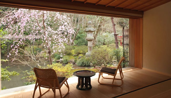 静寂な庭園の桜を部屋から愛で、温泉で癒される特別な時間を過ごせる至福の宿です。予約はコチラ♪